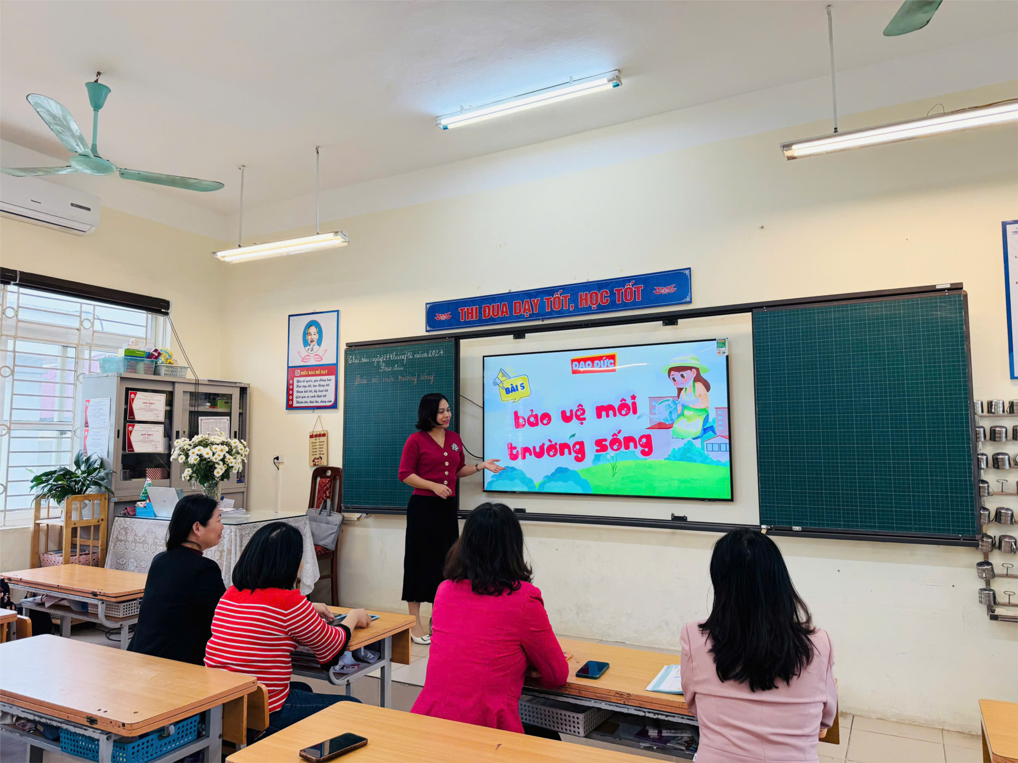 Thực hiện kế hoạch năm học 2024-2025, chiều thứ sáu, ngày 27/12/2024, tại phòng học lớp 5A5 trường Tiểu học Gia Thụy, cô giáo Trần Tuyết Lan đã thực hiện báo cáo tiết Chuyên đề Đạo đức lớp 5 - Bài “Bảo vệ môi trường sống” với sự tham dự của các đồng chí giáo viên trong khối 5.