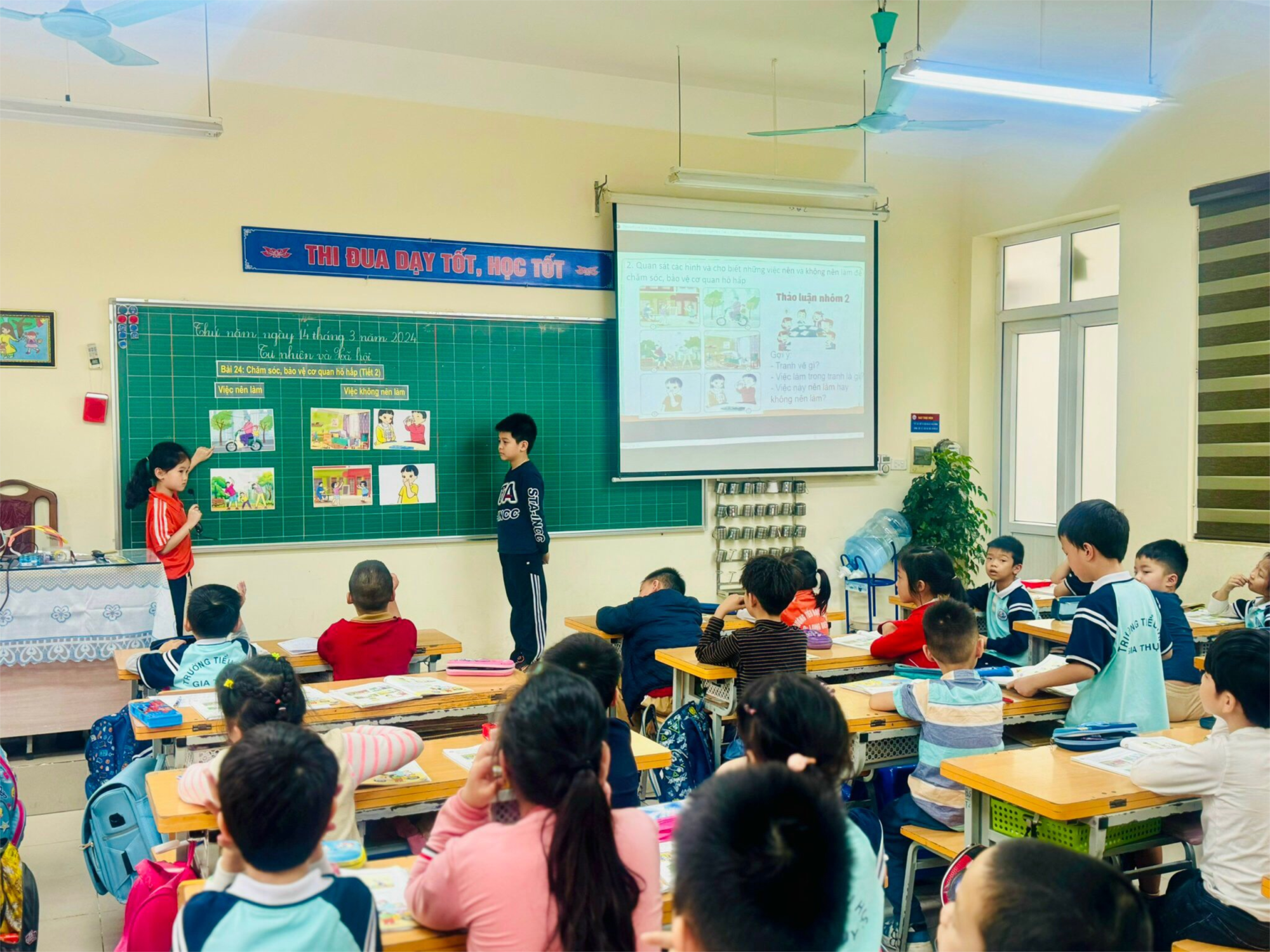 Chiều thứ năm, ngày 14 tháng 3 năm 2024, tại phòng học lớp 2A4, cô giáo Nguyễn Thị Nhị - GVCN lớp 2A4 đã thực hiện tiết chuyên đề Tự nhiên và Xã hội bài 24: Chăm sóc, bảo vệ cơ quan hô hấp (tiết 2).