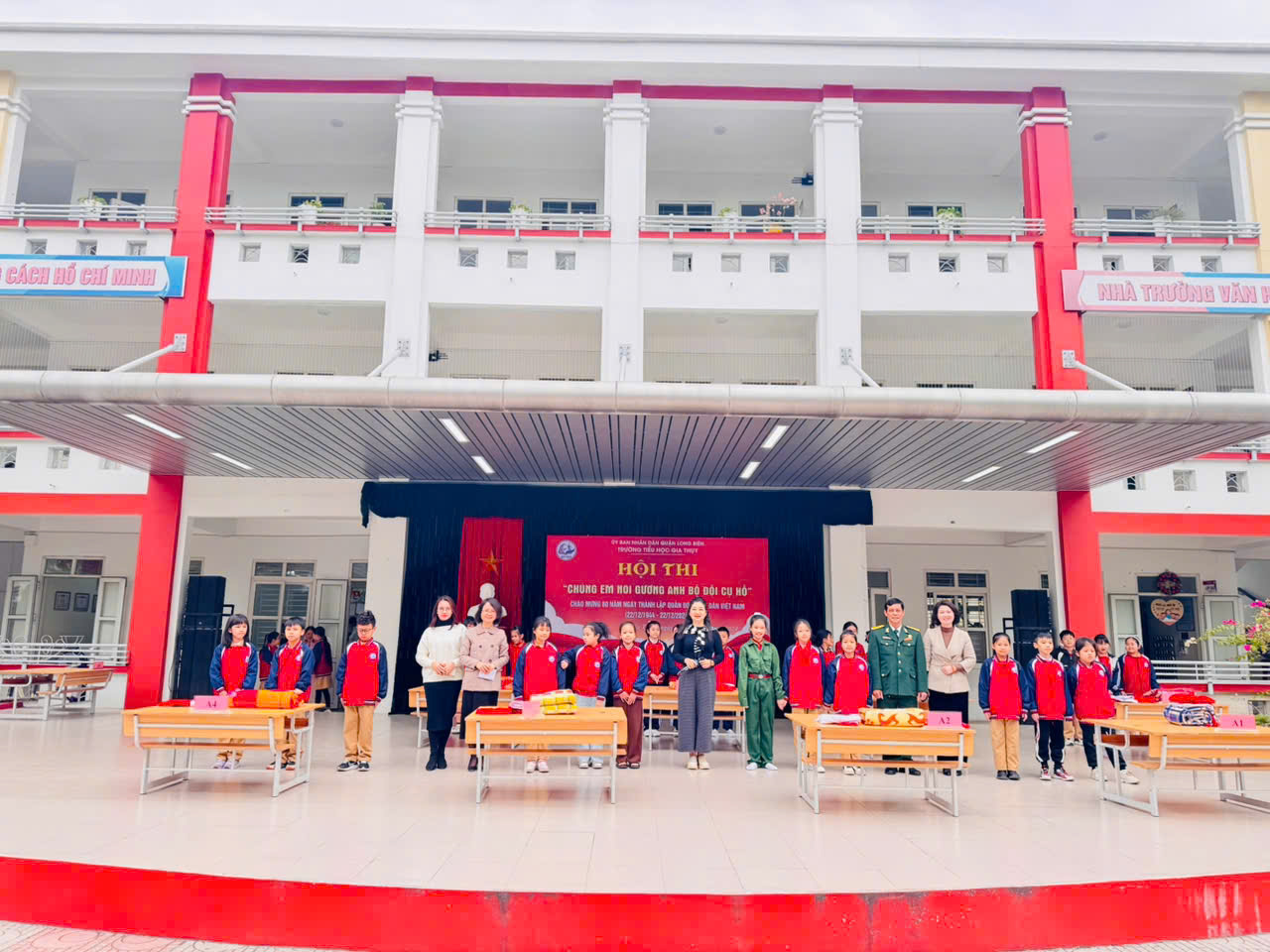 Tiếp đó là phần dự thi vô cùng hào hứng và sôi nổi của học sinh khối 3, 4, 5. Mỗi đội trong thời gian 3 phút cần hoàn thành nhiệm vụ gấp chăn, quần áo theo phong cách bộ đội Cụ Hồ. Đội nào cũng hăng hái, tích cực và khẩn trường hoàn thành phần dự thi của mình trong những tràng pháo tay, những lời động viên, cổ vũ của học sinh toàn trường. Hội thi là cơ hội để các con học sinh có thêm trải nghiệm bổ ích, thêm hiểu hơn về đời sống cũng như được học tập thêm đức tính cẩn thận, kỷ luật, nghiêm túc của anh bộ đội Cụ Hồ.