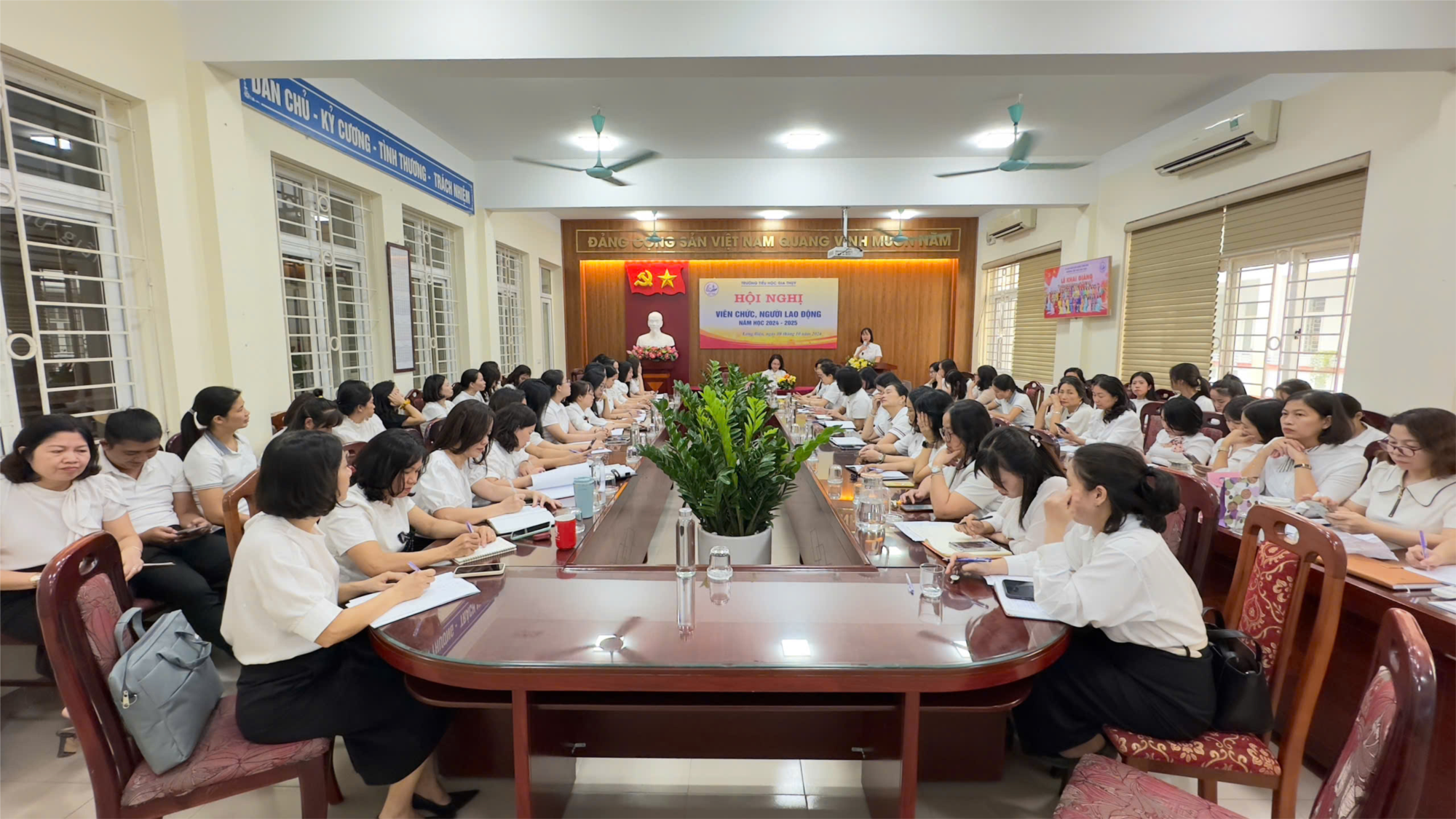 Thực hiện Hướng dẫn số 04/HD-LĐLĐ ngày 13/8/2024 của Liên đoàn Lao động quận Long Biên về quy trình tổ chức Hội nghị viên chức và Hội nghị người lao động khối trường học năm học 2024 - 2025, chiều ngày 08/10/2024, được sự đồng ý của Liên đoàn Lao động quận Long Biên, Chi bộ, Ban giám hiệu và công đoàn Trường Tiểu học Gia Thụy tổ chức hội nghị viên chức năm học 2024-2025.