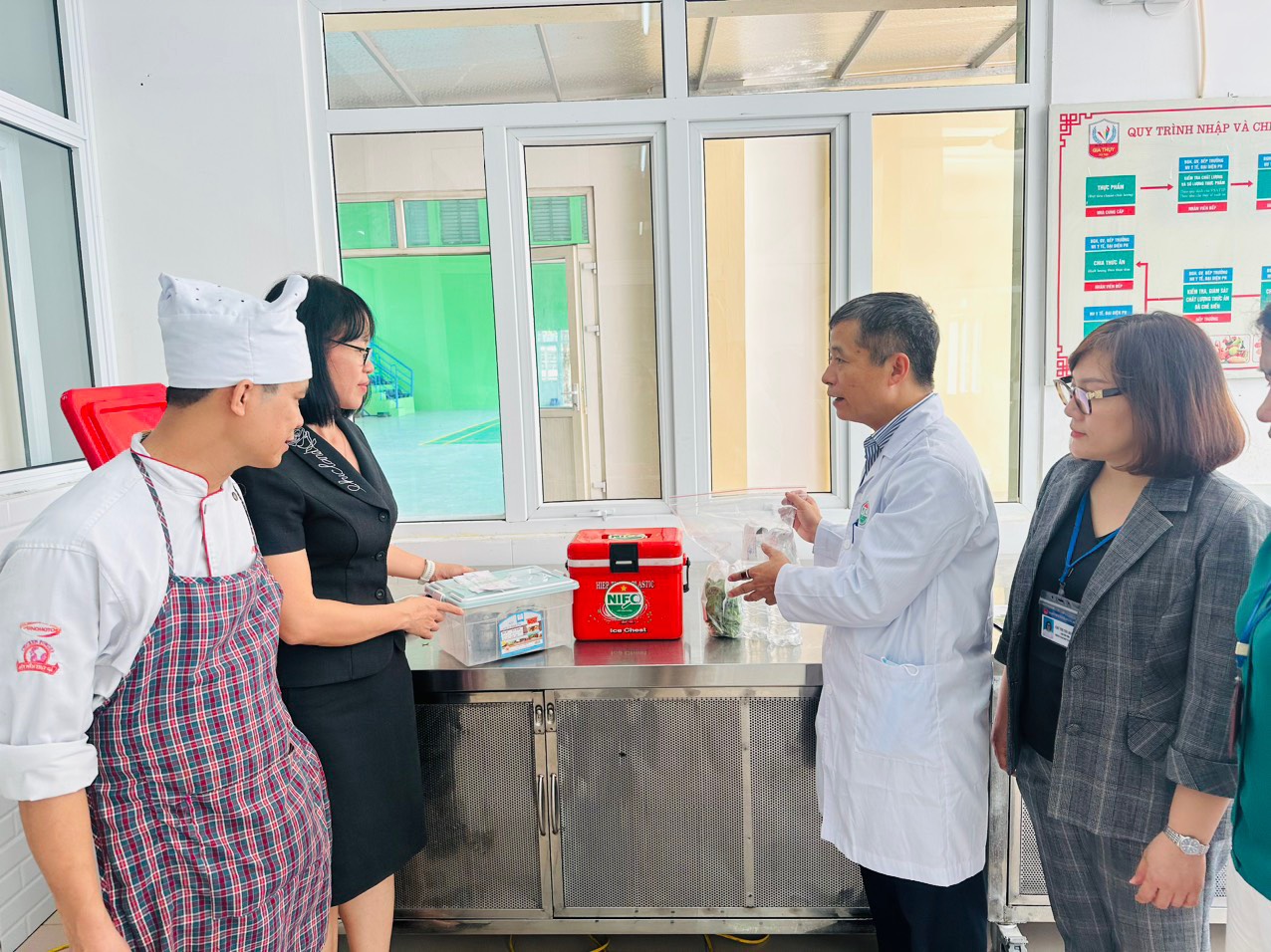 “ Nâng cao năng lực tự quản lý ATTP bếp ăn tập thể trường học”. Chính vì thế, công tác kiểm tra giám sát việc cung cấp nguồn nguyên liệu đầu vào cũng như đảm bảo suốt quá trình chế biến, đưa bữa ăn tới học sinh được thực hiện thường xuyên, hàng ngày, với nhiều đối tượng tham gia.