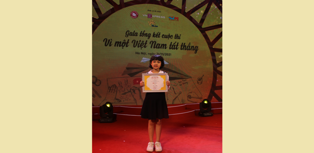 Ngọc Minh đến với cuộc thi “Vì một Việt Nam tất thắng” một cách rất tự nhiên. Chị Dương Nghiên Thường – cô giáo dạy Mĩ thuật của con có chia sẻ: “Khi biết đến cuộc thi, tôi nghĩ ngay đến cô học trò nhỏ này. Cô bé luôn không ngừng cố gắng, nỗ lực vượt lên hoàn cảnh bệnh tật, vượt lên những cơn đau để hòa nhập cùng các bạn và đặc biệt là vì trong con luôn có niềm say mê hội họa.” Thật vinh dự và tự hào biết bao, bức tranh “Xe chữa Covid” của cô bé đã vượt qua hơn 3000 bức tranh dự thi và xuất sắc nhận được giải đặc biệt của cuộc thi “Vì một Việt Nam tất thắng”. Bức tranh có sức lan tỏa sâu sắc, lay động đến trái tim bao người với ước mong thật hồn nhiên, ngây thơ mà cũng thật đẹp: ước gì có những chiếc xe mang phép màu kì diệu để chữa khỏi bệnh Covid, để cuộc sống lại trở nên tươi đẹp với tất cả mọi người trên thế giới này.