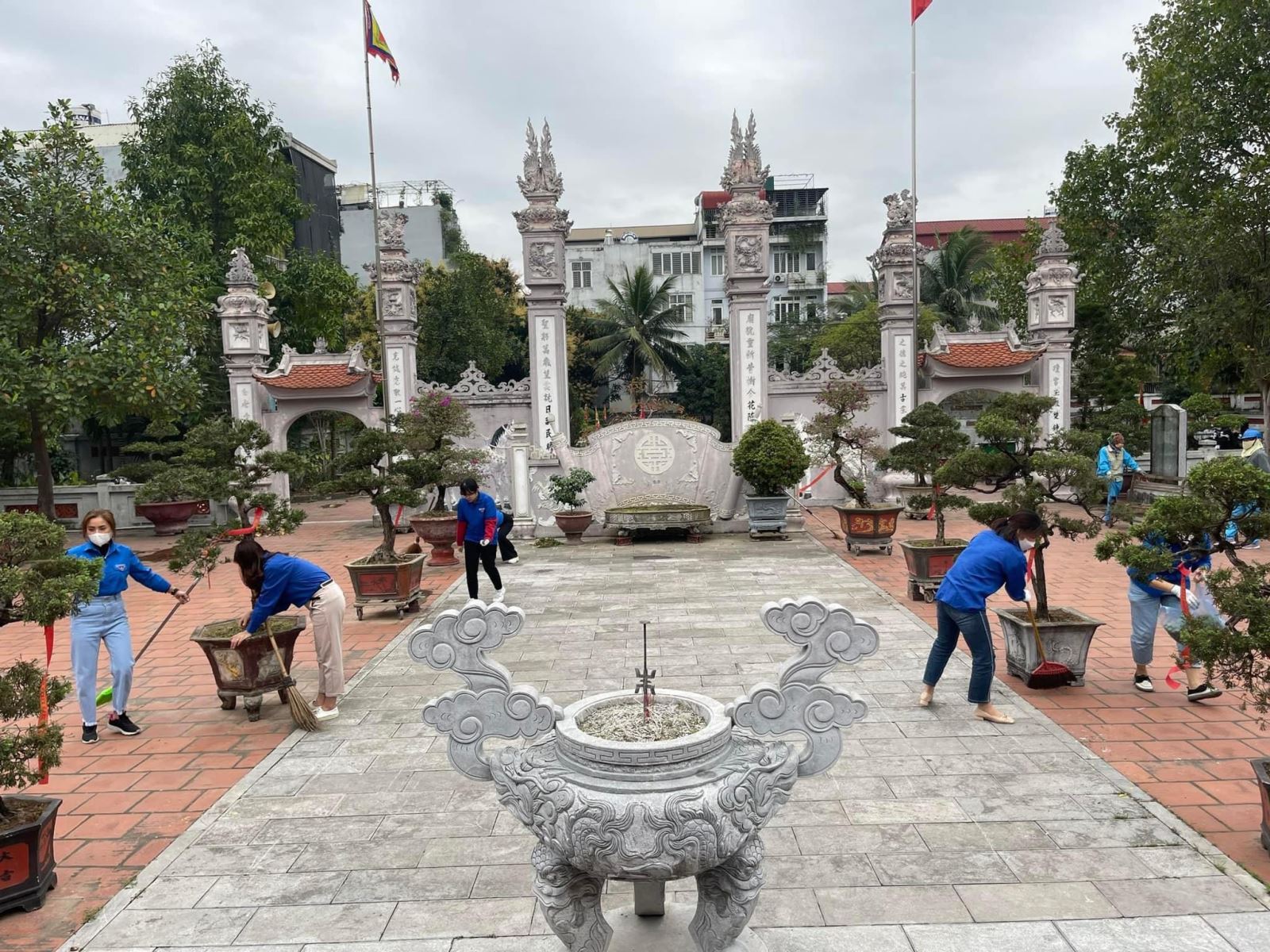 Tại buổi tổng dọn, các đoàn viên, thanh niên tham gia công tác đã tập trung dọn dẹp, thu gom rác khu vực sân chính và khu vực xung quanh Đình và Gò mộ Tổ, cắt tỉa cây xanh, san lắp các hố đất, tạo cảnh quan thông thoáng trong và ngoài khu vực.