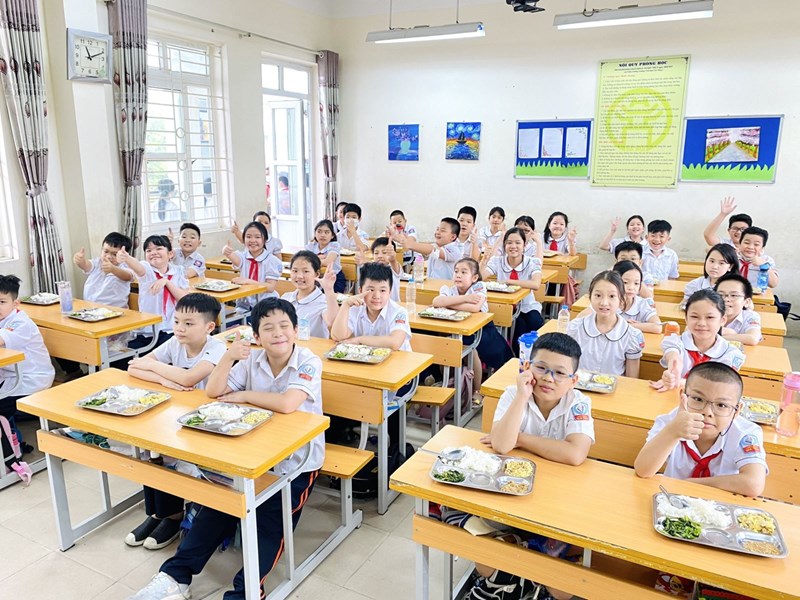 Ngay khi học sinh được trở lại trường học tập, nhà trường và công ty suất ăn Hoa Sữa đã khẩn trương chuẩn bị cơ sở vật chất, khởi động toàn bộ guồng máy phục vụ bán trú. Để đảm bảo mang đến cho các con học sinh những bữa ăn ngon, nóng hổi, đủ chất dinh dưỡng, công tác bán trú của nhà trường được vận hành theo quy trình rất nghiêm ngặt từ khâu lên thực đơn, duyệt thực đơn, xây dựng định lượng đến khâu giao nhận thực phẩm, chế biến thực phẩm, chia suất ăn, chăm sóc bán trú. Khâu nào cũng có đại diện nhà trường, phụ huynh học sinh giám sát, kiểm tra hàng ngày. Tất cả các khâu trong quy trình đều phải đảm bảo an toàn vệ sinh thực phẩm, phòng chống dịch tốt. Để đảm bảo công tác phòng chống dịch, học sinh ăn trưa tại lớp học của mình. Riêng năm lớp khối 4 ăn tại hai tầng của nhà ăn. Các lớp học đều được trang bị quạt, điều hòa, đảm bảo thoáng mát cho các con ăn và ngủ trưa. Thực đơn của nhà trường cũng được thay đổi liên tục để đáp ứng khẩu vị của các con học sinh. Theo ghi nhận của ban chỉ đạo công tác bán trú, các con học sinh đều rất hào hứng với những bữa trưa của nhà trường. Phần lớn các con đều yêu thích các món ăn và ăn hết suất.