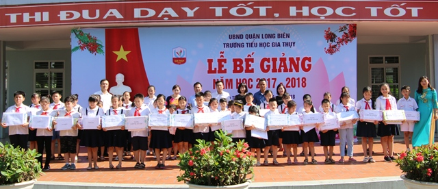 Khi những ánh nắng chói chang chiếu rọi qua từng vòm lá bàng, nhảy nhót xuống khoảng sân trường, khi chùm phượng đỏ rực gọi rộn lên những tiếng râm ran của bày ve, khi cây bằng lăng rực lên sắc tím của hoa hơn cả sắc xanh của lá cũng là lúc một năm học dần kết thúc. Các bạn học sinh tạm chia tay mái trường thân yêu để đón một kỳ nghỉ hè sau một năm học tập chăm chỉ. Hôm nay ( 25-5-2018), được sự đồng ý của Phòng GD và ĐT quận Long Biên, Trường Tiểu học Gia Thụy long trọng tổ chức Lễ Bế giảng năm học và tuyên dương, khen thưởng các tập thể, cá nhân đạt thành tích Xuất sắc trong học tập và các phong trào thi đua năm học 2017-2018.