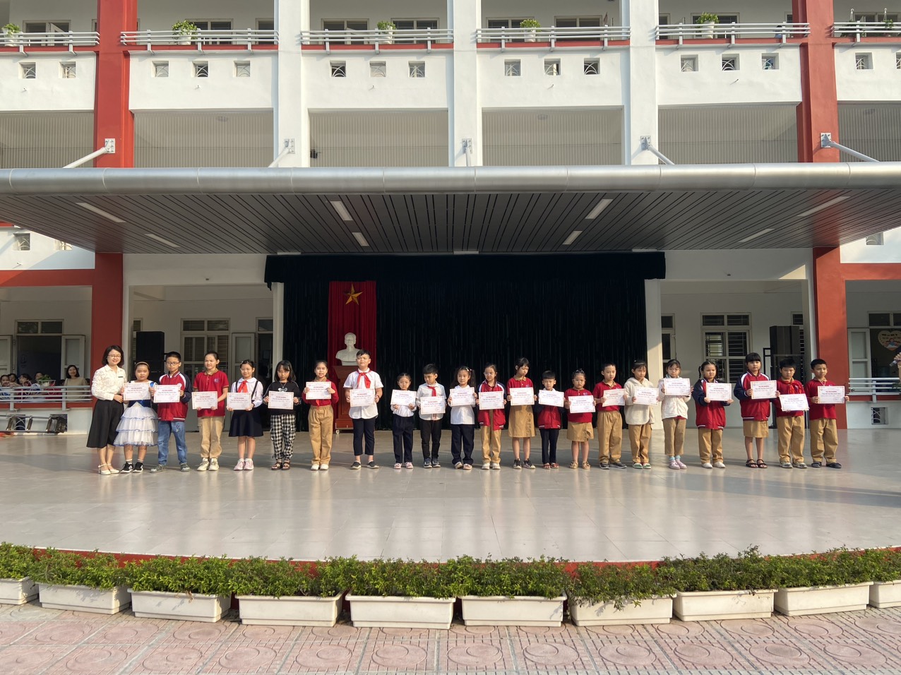 Cũng trong buổi lễ, nhà trường đã tuyên dương khen thưởng các bạn học sinh có sản phẩm đạt thành tích cao trong cuộc thi Sáng tạo thanh thiếu niên nhi đồng cấp trường do Liên đội phát động. Đồng thời cũng tuyên dương 21 tập thể lớp đạt danh hiệu “ Lớp học Xanh – Sạch - Đẹp – Văn minh “ trong đợt thi đua chào mừng 41 năm Ngày Nhà giáo Việt Nam.