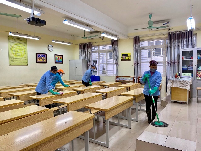 Ngay từ 7h sáng, cán bộ, giáo viên, nhân viên đã có mặt tại trường với các dụng cụ lao động trong tay, nhanh nhẹn, nhiệt tình tham gia vào công việc tổng vệ sinh. Để việc tổng vệ sinh được hiệu quả hơn, ban giám hiệu đã phân công rõ ràng từng khu vực cho mỗi khối lớp và trực tiếp chỉ đạo, tham gia cùng các giáo viên, nhân viên. Chỉ khoảng một tiếng đồng hồ, tất cả các khu vực đều khô ráo, sạch sẽ, càng làm đẹp thêm khung cảnh sư phạm của nhà trường và đặc biệt là có tác dụng tốt trong việc phòng chống dịch bệnh.
