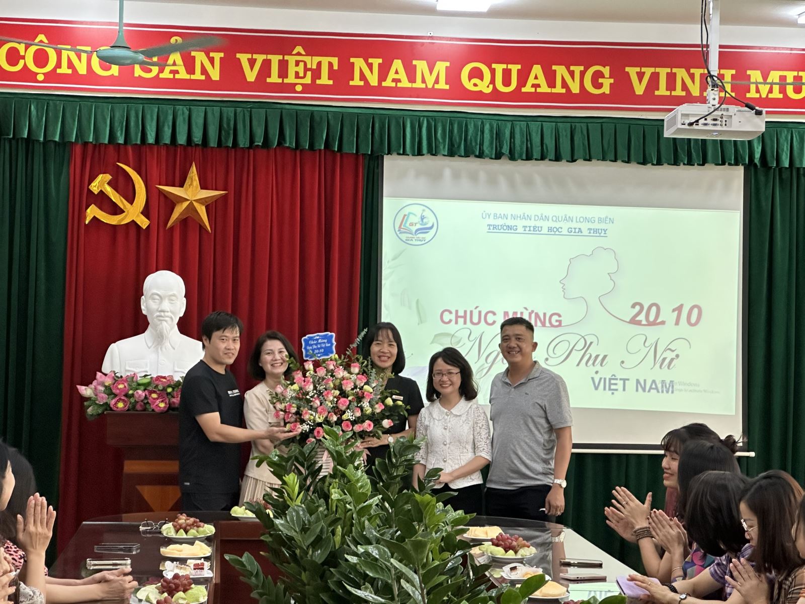 Hướng tới kỷ niệm 93 năm ngày thành lập Hội liên hiệp Phụ nữ Việt Nam, cũng là ngày Phụ nữ Việt Nam 20/10 - một ngày lễ đặc biệt nhằm tôn vinh phái đẹp, Ban chấp hành công đoàn trường TH Gia Thụy đã tổ chức một buổi mitting ấm áp tại phòng Hội đồng nhà trường vào lúc 13h30 ngày 19/10. Buổi gặp mặt có sự tham dự của tất cả cán bộ, giáo viên, nhân viên trong nhà trường.