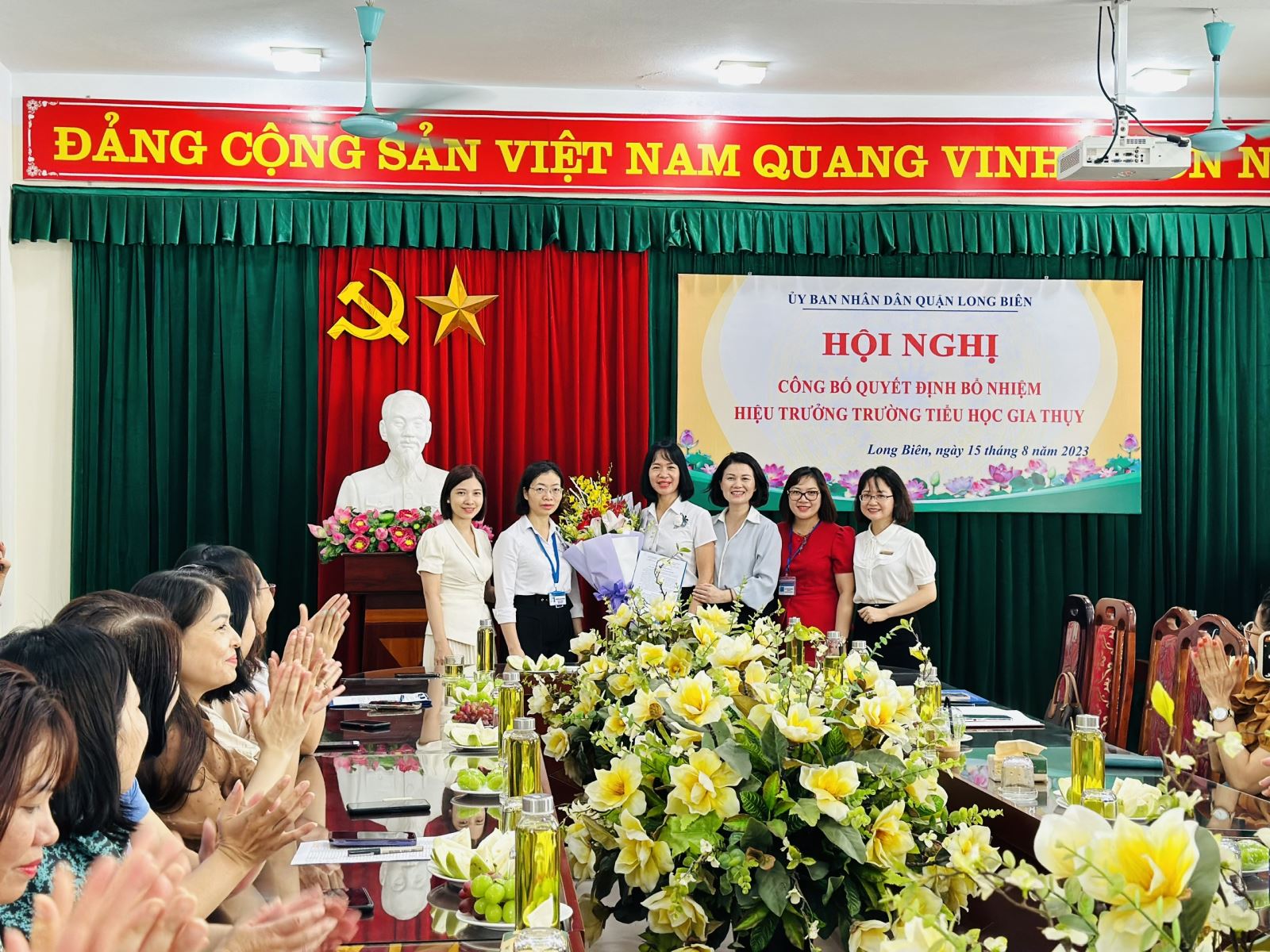 Sáng ngày 15/8/2023, tại phòng Hội đồng trường Tiểu học Gia Thụy đã diễn ra Hội nghị công bố quyết định bổ nhiệm Hiệu trưởng nhà trường. Đến dự hội nghị có các đồng chí lãnh đạo phòng Nội vụ, phòng Giáo dục và đào tạo, đại diện UBND phường Gia Thụy cùng toàn thể cán bộ, giáo viên, nhân viên nhà trường.