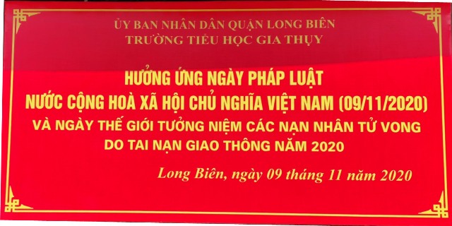 Thực hiện kế hoạch số 193/KH-UBND ngày 06/10/2020 của UBND Thành phố Hà Nội; Kế hoạch số 3442/ SGDĐT-VP ngày 09/10/2020 của Sở Giáo dục và Đào tạo Hà Nội; Công văn số 157/PGD&ĐT ngày 16/10/2020 của phòng Giáo dục và Đào tạo quận Long Biên về việc tổ chức hưởng ứng “Ngày Pháp luật nước Cộng hòa XHCN Việt Nam” năm 2020, sáng ngày 9/11/2020, trường Tiểu học Gia Thụy đã tổ chức chương trình hưởng ứng “Ngày Pháp luật nước Cộng hòa XHCN Việt Nam 09/11”. Nhằm đảm bảo an toàn trong tình hình dịch bệnh Covid-19, chương trình tuyên truyền đã được diễn ra tại các lớp học.