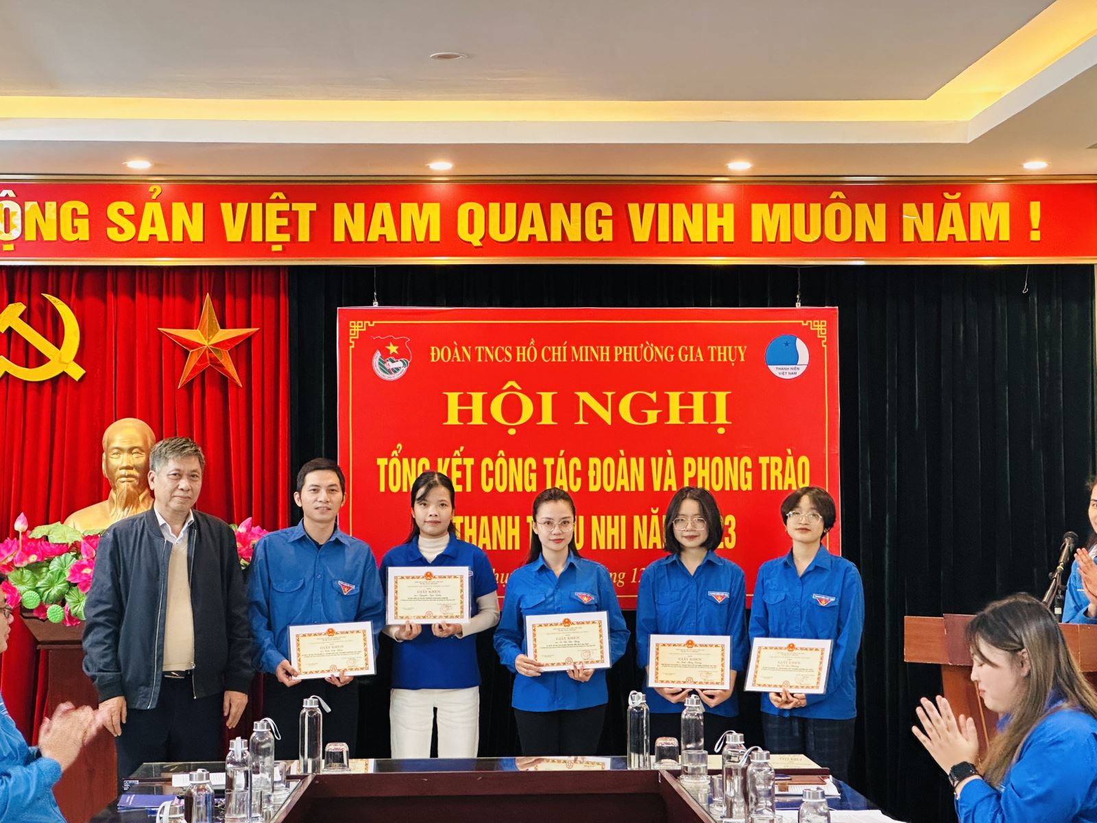 Để thực hiện tốt các mục tiêu, nhiệm vụ được giao, BCH Đoàn thanh niên trường Tiểu học Gia Thụy đã không ngừng học hỏi, tự bồi dưỡng nâng cao trình độ, chuyên môn nghiệp vụ, đổi mới các nội dung hoạt động và vận dụng phù hợp, sáng tạo, hiệu quả vào thực tế nhà trường. Nhờ có đổi mới cách thức hoạt động, vận dụng sáng tạo, phù hợp với điều kiện nhà trường, hoạt động của tổ chức Đoàn thanh niên trong nhà trường đã có những chuyển biến đáng kể, đạt được những kết quả nhất định, đem lại nhiều thành tích đáng tự hào, cụ thể: Chi đoàn đã được Chủ tịch Ủy ban nhân dân phường Gia Thụy trao tặng giấy khen ghi nhận thành tích công tác Đoàn và phong trào thanh thiếu nhi năm 2022 do phường tổ chức. Để đạt được thành tích đó phải kể đến sự nỗ lực phấn đấu của đồng chí Bí thư Chi đoàn Lê Thị Thu Thủy. Là một giáo viên trẻ nhưng tâm huyết với nghề, luôn tích cực trong các hoạt động do các cấp tổ chức, đồng chí cũng đã Chủ tịch Ủy ban nhân dân phường Gia Thụy trao tặng giấy khen ghi nhận những thành tích trong công tác Đoàn năm 2022.