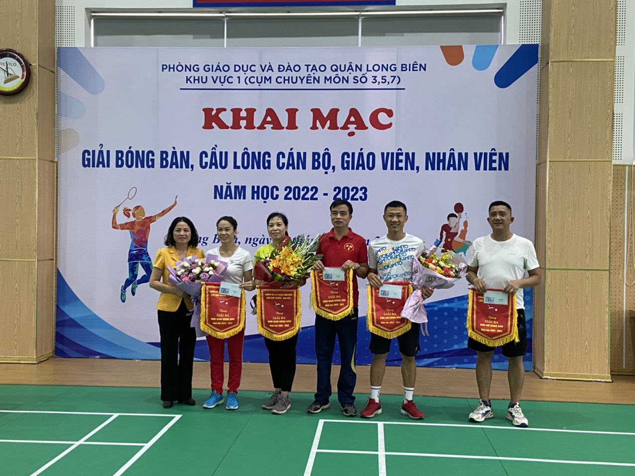 Sáng ngày 08/10/2022, tại nhà thể chất trường Tiểu học Đoàn Khuê đã diễn ra giải bóng bàn, cầu lông năm học 2022-2023 dành cho cán bộ, giáo viên, nhân viên cụm chuyên môn số 3, 5, 7. Thầy giáo Đinh Hải Dương, Nguyễn Hoàng Thuấn đại diện cho tập thể cán bộ, giáo viên, nhân viên trường Tiểu học Gia Thụy đã tham gia dự thi nội dung đơn nam bóng bàn và đơn nam cầu lông.