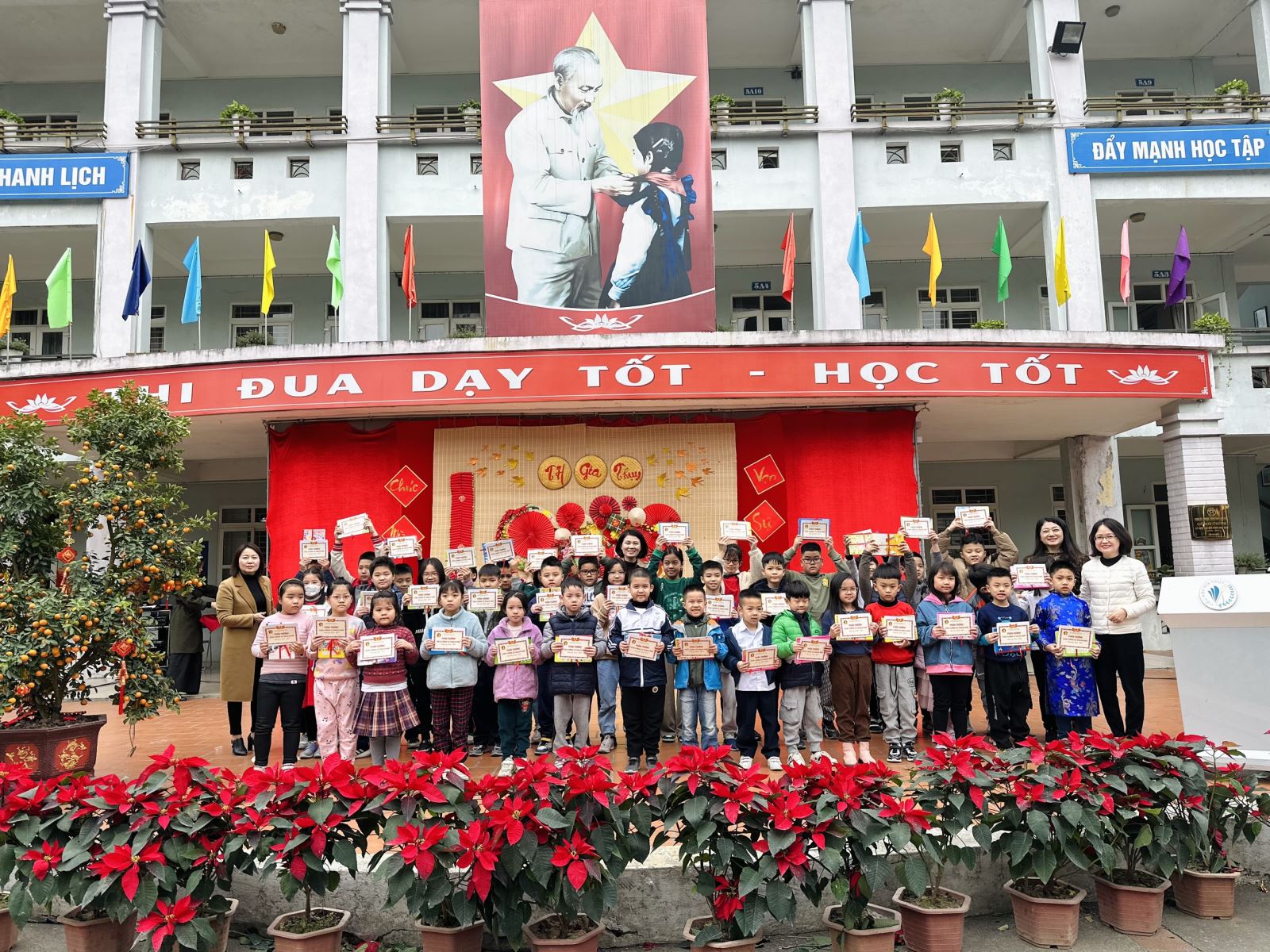 Trong buổi sơ kết học kì, thầy trò trường Tiểu học Gia Thụy đã cùng lắng nghe cô giáo Nguyễn Thị Hồng – Hiệu trưởng nhà trường báo cáo những kết quả, thành tích tốt đẹp mà giáo viên, học sinh đã đạt được trong học kì vừa qua. Đó là thành quả xứng đáng cho những nỗ lực của tập thể cán bộ, giáo viên, nhân viên nhà trường và cũng là động lực để thầy trò nhà trường tiếp tục phấn đấu trong học kì II. Cũng tại buổi lễ này, nhà trường đã tặng giấy chứng nhận và phần thưởng cho những bạn học sinh đạt danh hiệu Kiện tướng trong hội thu Kế hoạch nhỏ vừa qua. Đặc biệt, nhằm động viên, khích lệ các bạn học sinh tiếp tục cố gắng nỗ lực trong học tập, nhà trường đã tặng 13 suất quà Tết cho các bạn học sinh là con liệt sĩ, con gia đình có hoàn cảnh khó khăn. Món quà thay lời chúc Tết gửi tới các con học sinh và gia đình đón một mùa xuân mới ấm no, hạnh phúc.