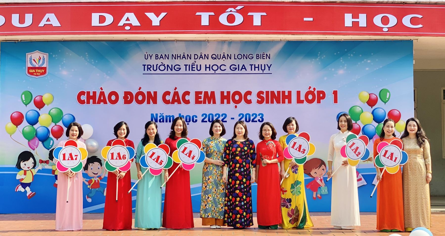 Tham gia buổi lễ có sự hiện diện của cô Hiệu trưởng Nguyễn Thị Hồng, cô Hoàng Thị Thu Hiền và cô Nguyễn Phương Hằng – Phó Hiệu trưởng nhà trường. Ngoài ra, còn có các thầy cô giáo là đại diện cho các khối lớp trong trường, quý phụ huynh học sinh và đặc biệt là có sự góp mặt của 271 học sinh lớp 1. Tưng bừng, rực rỡ, rộn ràng, xen lẫn bất ngờ, ngạc nhiên … là những gì mà phụ huynh cũng như các con học sinh cảm nhận được thông qua buổi lễ đón học sinh lớp 1 năm nay. Với tấm lòng yêu nghề, mến trẻ, với mong muốn tạo cho các em bước khởi đầu tự tin, thân thiện, các thầy cô giáo đã thiết kế một chương trình đặc biệt chào đón các em học sinh lớp 1. Phát biểu trong buổi lễ, cô giáo Nguyễn Phương Hằng - Phó Hiệu trưởng nhà trường đã có những lời hỏi thăm, động viên và khích lệ các con học sinh khối lớp 1 của trường trong ngày đầu tiên đến với ngôi nhà mới, nơi sẽ chắp cánh và vẽ nên những ước mơ trong 5 năm học tới đây của các con. Vậy là bắt đầu từ hôm nay, gần 300 học sinh lớp 1 sẽ cùng nhau học tập, cùng nhau vui chơi dưới mái trường tiểu học Gia Thụy – ngôi trường với bề dày thành tích trong nhiều năm qua, với đội ngũ các thầy cô giáo tâm huyết, yêu nghề mến trẻ. Nơi đây sẽ là ngôi nhà thứ hai của các em. Mỗi ngày đến trường là một ngày vui, các em sẽ được đón nhận những tình cảm yêu thương, những bài học hay, bổ ích mà thầy cô dành cho các em. Đó là hành trang đầu tiên giúp các em đến với cánh cửa của tri thức, khơi dậy trong tâm hồn trong sáng của các em những bài học làm người.