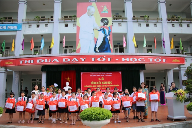 Tiếp theo chương trình, cô giáo Nguyễn Thị Kiều Linh – Phó hiệu trưởng, Chủ tịch công đoàn trường đã tổng kết các hoạt động, các thành tích mà thầy và trò nhà trường đã đạt được trong năm học. Thật vui và tự hào biết bao khi trường Tiểu học Gia Thụy đã vinh dự nhiều năm liền đạt danh hiệu Tập thể lao động xuất sắc, luôn đứng trong tốp đầu của Quận Long Biên về phong trào dạy và học. Năm học này, các thầy cô giáo đã mang về cho nhà trường 1 giải Nhất Giáo viên dạy giỏi cấp Thành phố, một giải B sáng tác ca khúc thiếu nhi cấp Thành phố, 1 giải Nhì Giáo viên dạy giỏi cấp Quận. Bên cạnh đó là bảng vàng thành tích rất đáng tự hào của các bạn học sinh với 25 học sinh cấp Quận, 8 học sinh cấp Thành phố, 6 học sinh cấp Quốc gia và đặc biệt là 8 học sinh cấp Quốc tế. Có được những thành tích ấy trước hết là nhờ sự quan tâm, chỉ đạo sát sao của Ban giám hiệu nhà trường, sự tận tâm, say sưa chuyên môn, yêu nghề, mến trẻ của các thầy cô giáo, sự nỗ lực, cố gắng rèn luyện, học tập của các con học sinh và cũng không thể không kể đến sự đồng hành, ủng hộ của các bậc phụ huynh. Trong buổi lễ, những gương mặt tiêu biểu của các thầy cô giáo, các em học sinh, các tập thể lớp lần lượt được nhận những phần thưởng và sự tôn vinh của đồng nghiệp, của bạn bè dành cho những thành quả tốt đẹp mà các thầy cô và các con đã đạt được.