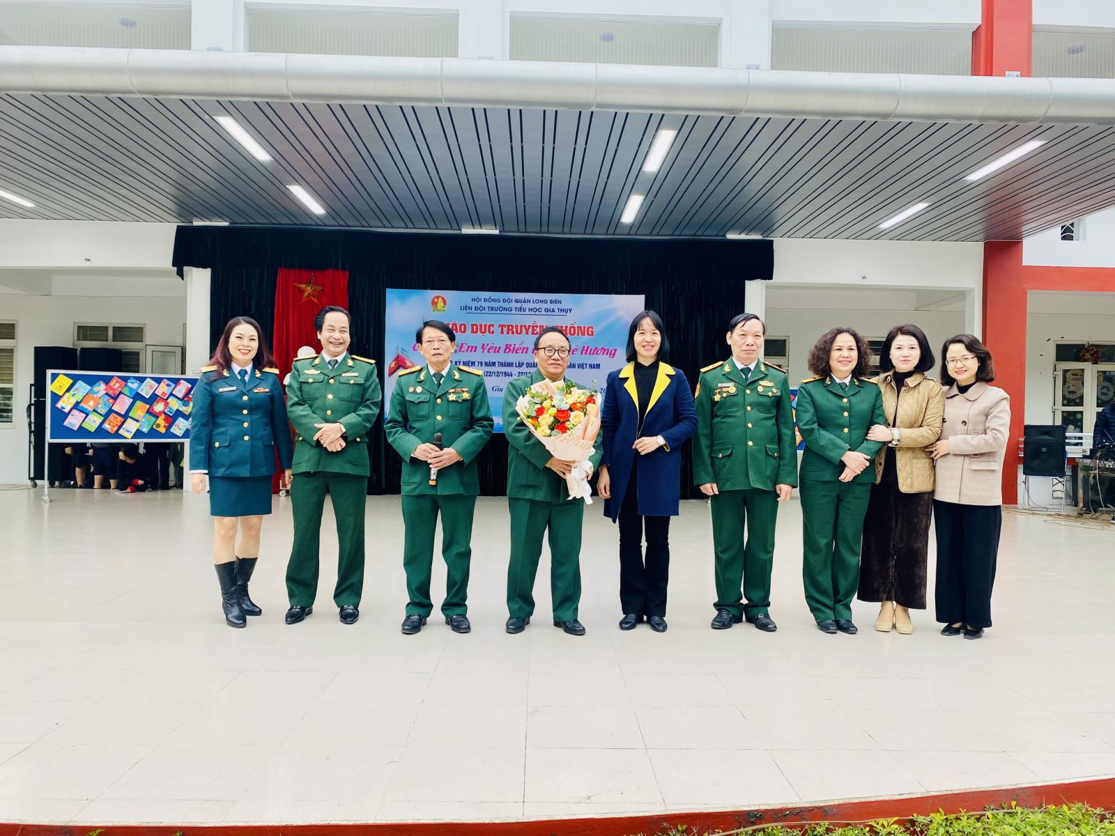 Hòa chung trong không khí của cả nước chào mừng 79 năm ngày thành lập Quân đội nhân dân Việt Nam (22/12/1944 - 22/12/2023), kỷ niệm 51 năm chiến thắng Điện Biên Phủ trên không và 34 năm ngày hội Quốc phòng toàn dân (22/12/1989 - 22/12/2023), hôm nay, trường tiểu học Gia Thụy long trọng tổ chức chương trình giao lưu ca nhạc kỉ niệm 79 năm ngày thành lập Quân đội Nhân dân Việt Nam với các chiến sỹ thương bệnh binh là cựu chiến binh Thủ đô Hà Nội với chủ đề "Em yêu biển đảo quê hương”.
